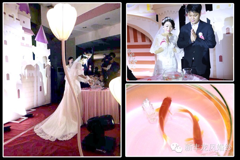 金鱼是落入凡尘的精灵,王子与公主将杯中的精灵交汇在一起,合二为一;双手合十,许下心中最美好的愿望。。。